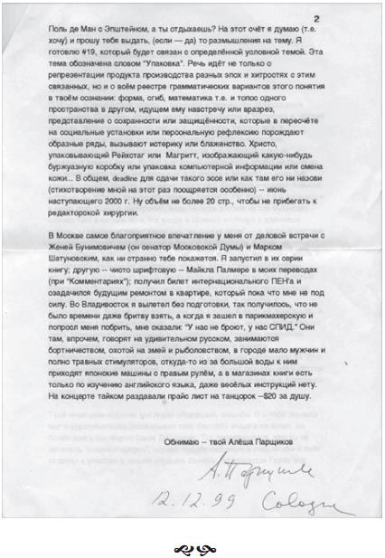 VII 1 См. подробней в письме VIII. 2Эссе с переводами из поэзии А.П. «Дер проминентер русишер дихтер — Алексей Парщиков» («Выдающийся русский поэт — Алексей Парщиков») было опубликовано в нью-йоркском еженедельнике «Форвертс», 12.9.1993.